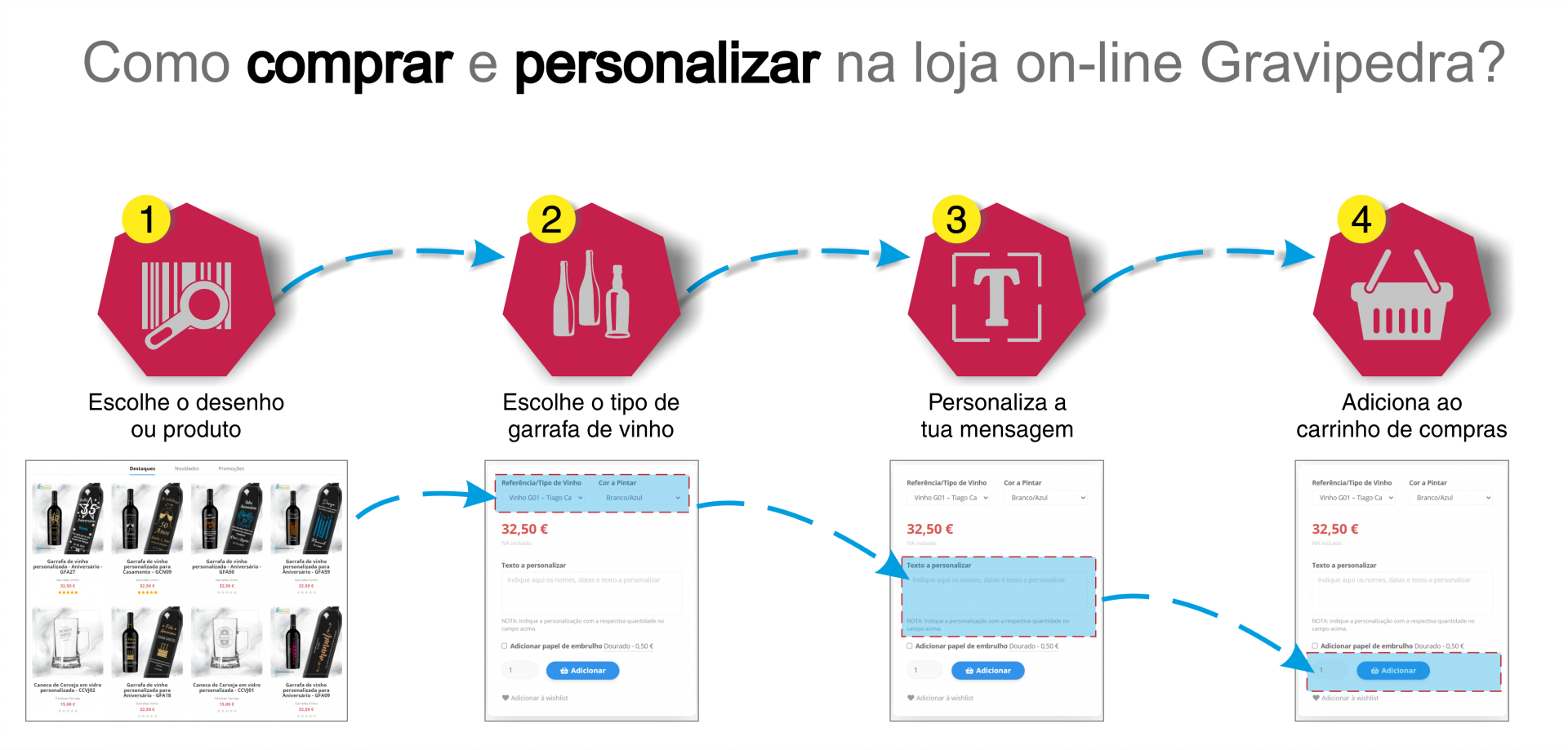2 – Selecione o tipo de vinho, modelo copo ou caneca.