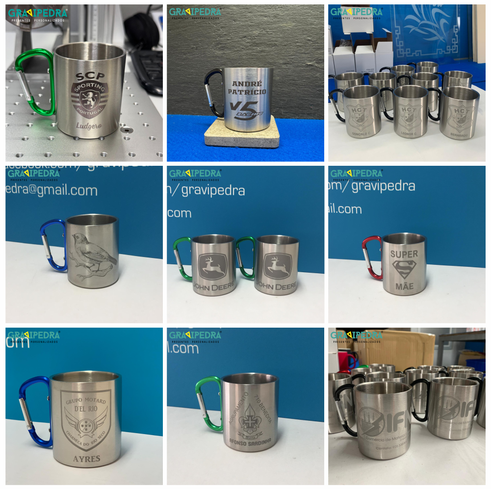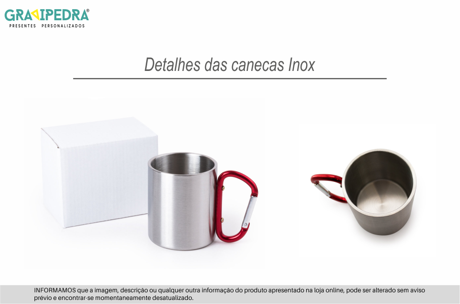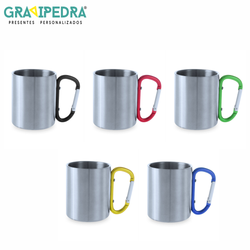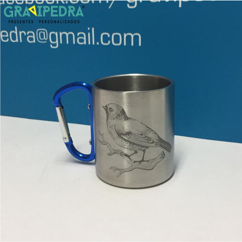 Caneca em inox com mosquetão - Personalize ao seu gosto - CAINOX01