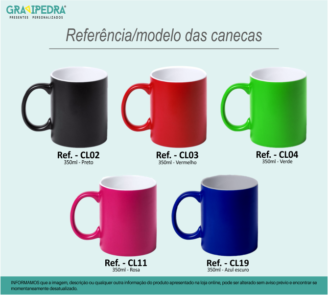 - Caneca(s) (de acordo com modelo disponível na referência/Modelo das canecas)