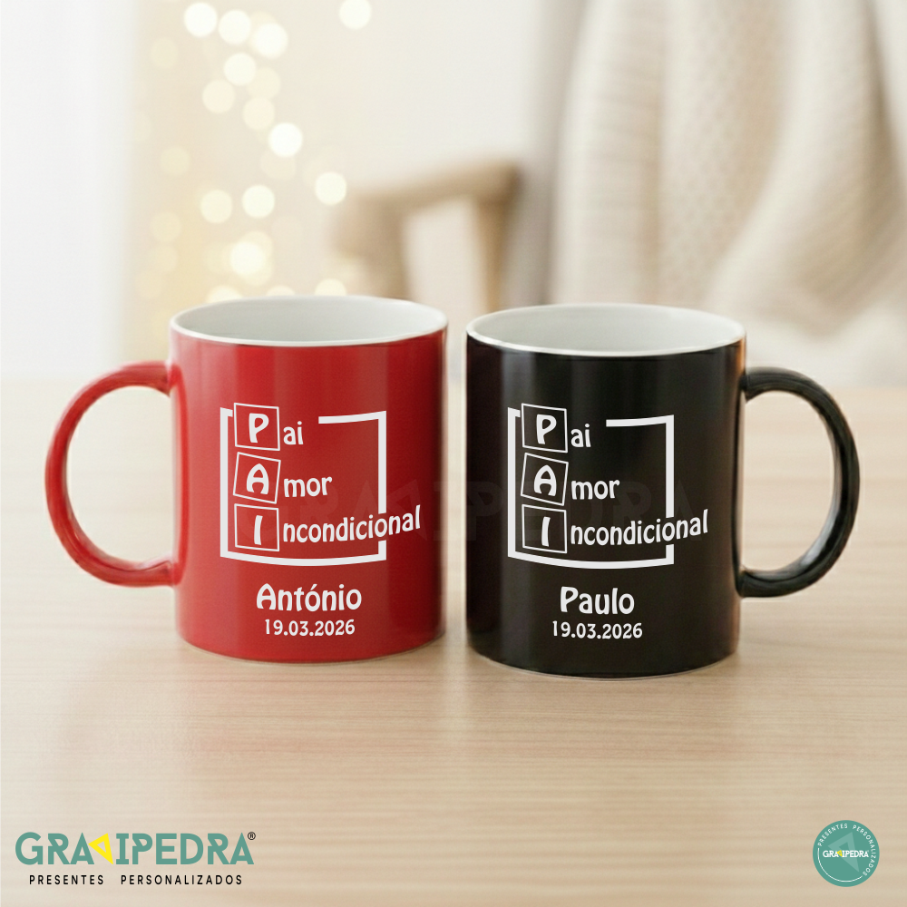 Canecas personalizadas com uma imagem/mensagem para um presente inesquecível para o Dia do PAI.