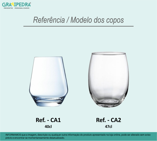 - Copo(s) de vidro. (de acordo com modelo disponível na referência/Modelo dos copos)