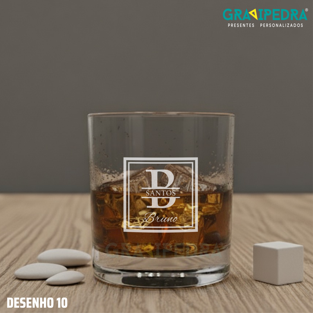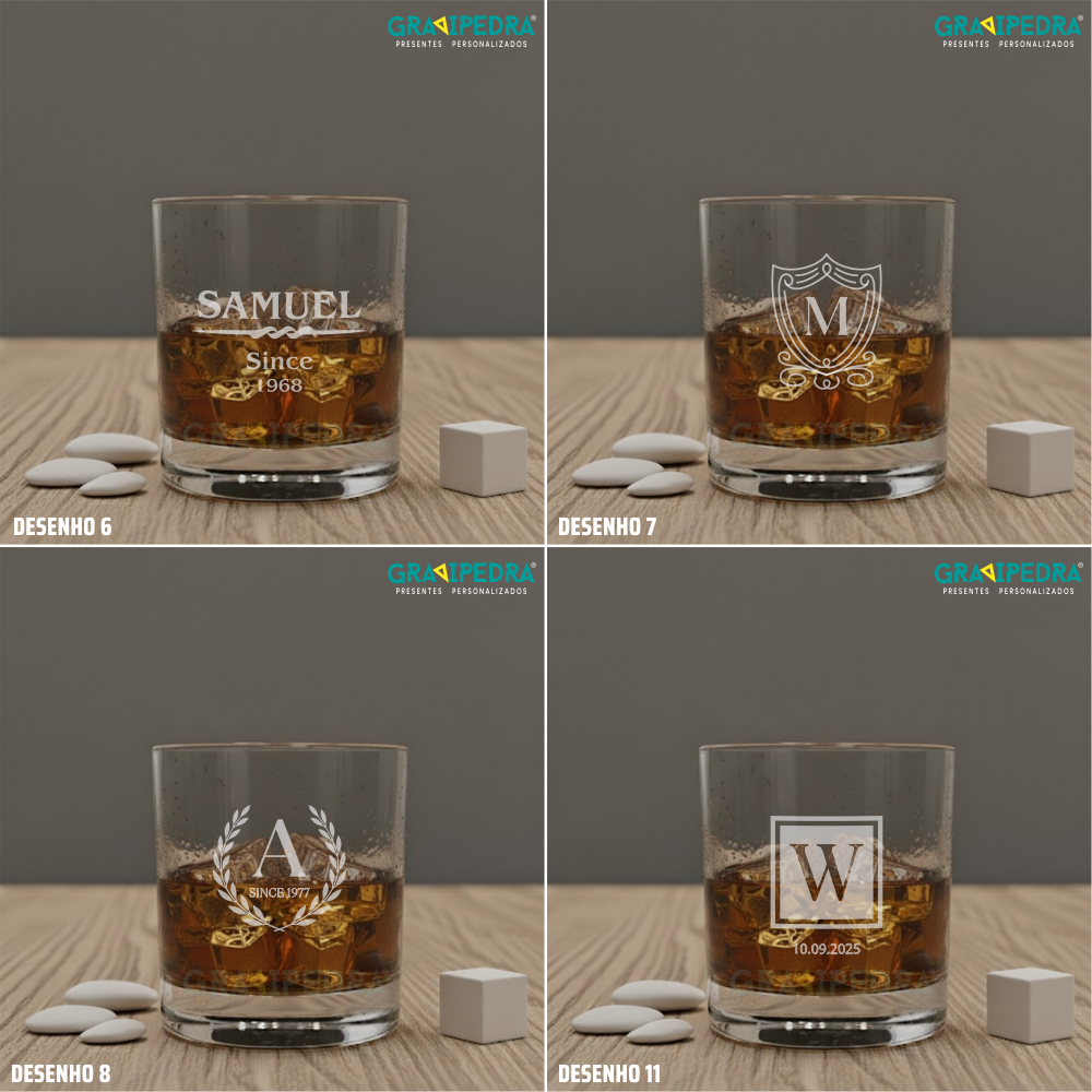 Copo whisky em vidro personalizado - Vários Desenhos - CVWD05