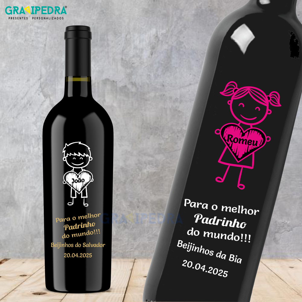 Garrafa de vinho personalizada - Padrinhos - GPDR01