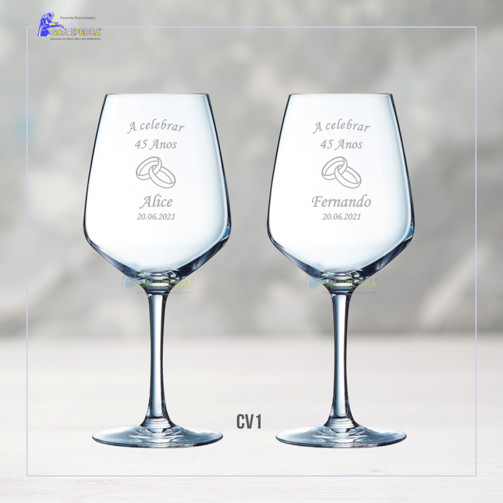 Pack 2 Copos em vidro personalizados - Casamento - CVCN11A