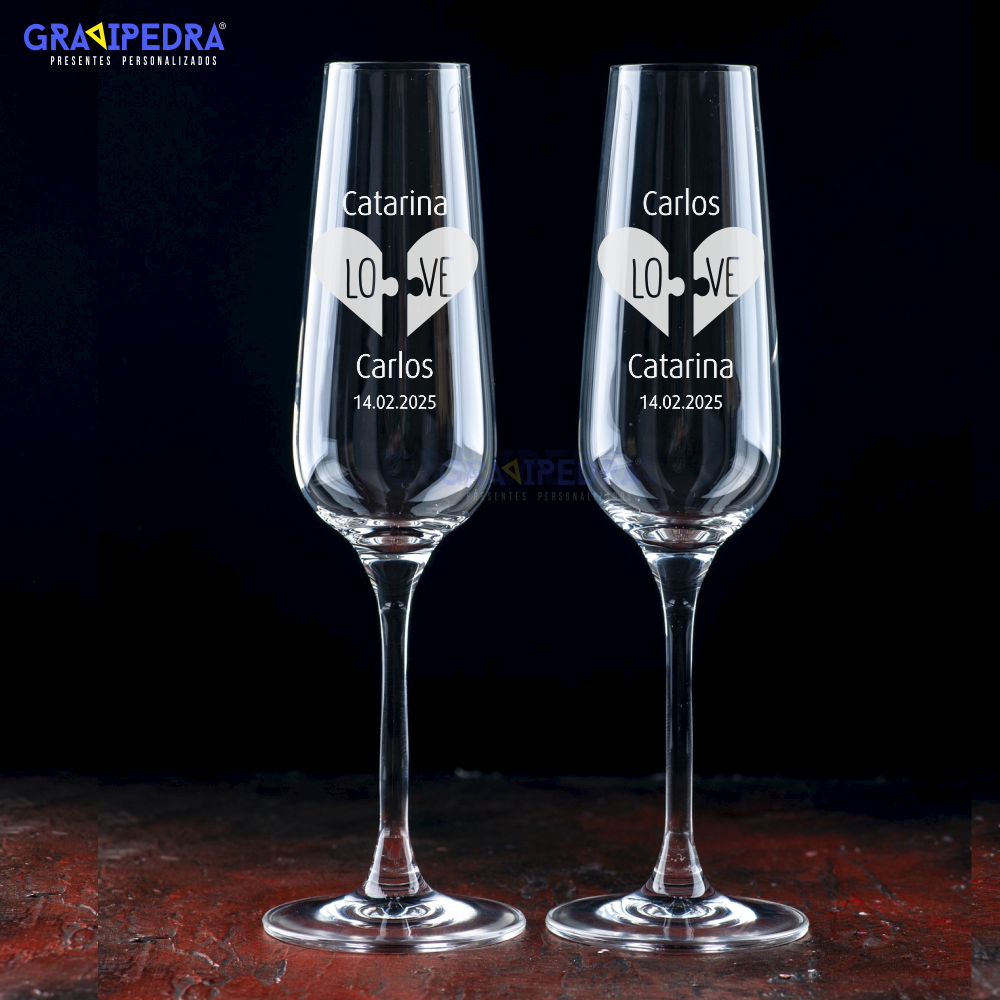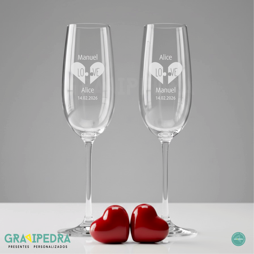 Personalize com nomes do casal, uma data especial, uma frase romântica ou um símbolo que represente a vossa relação.