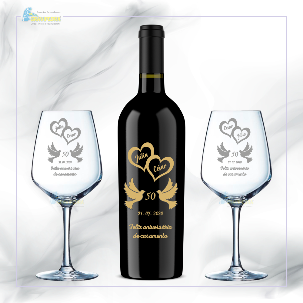 Garrafa e copos personalizados com uma imagem/mensagem para um presente inesquecível.